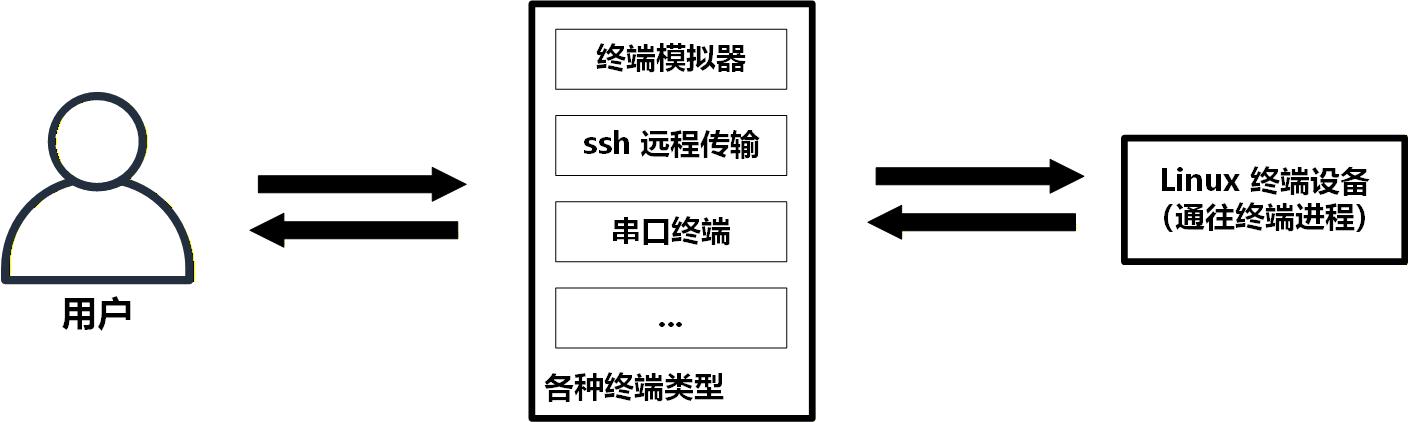 Linux 系统并不关心我们使用的终端类型。在它看来,不同的终端就是一条双向字节流通道。用户通过敲击键盘,通过终端向通道发送信息;而命令执行的结果也通过通道返回终端,并由终端展示给用户。