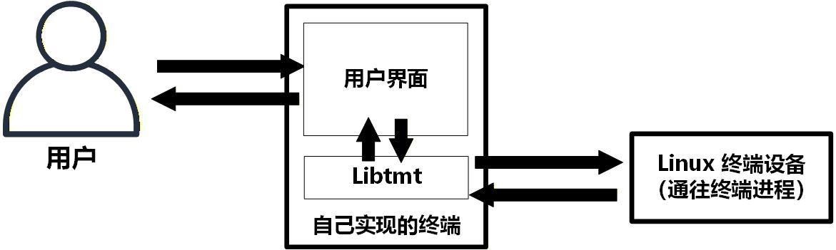 libtmt 和它的大哥 libtsm 一样,都是处理终端转义序列,并维护终端状态机的库。需要注意的是,libtmt/libtsm 等库并不负责如何具体向用户显示终端内容,而只是根据收到的字节流(字符、转义序列),维护终端状态机,仅此而已。用户界面可以通过读取 libtmt 的状态来实时更新最新的终端内容,让用户看见。